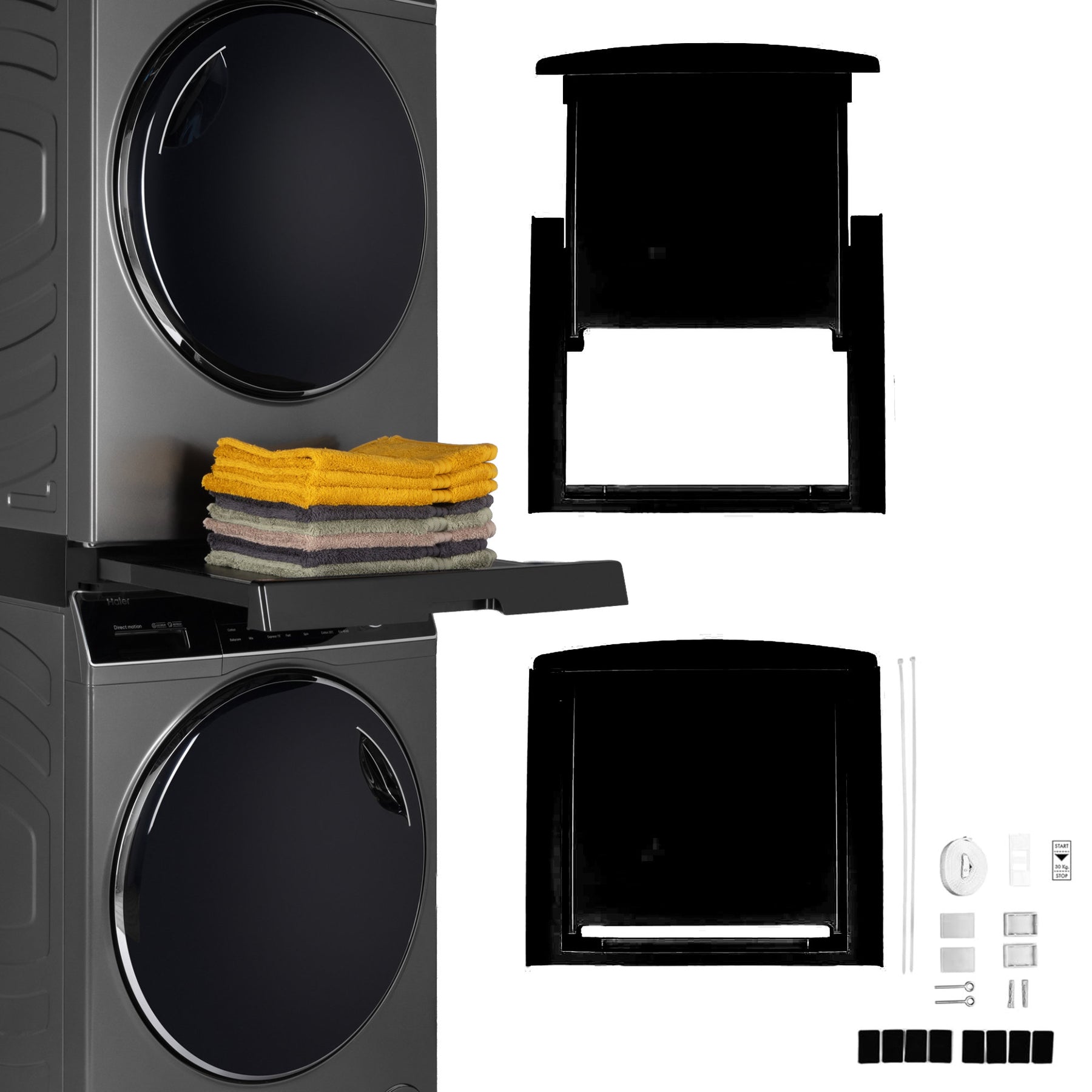 Haier Stacking Kits was specifically designed for Hoover appliances, but it is an universal solution for standard appliances with a depth between 47 and 62 cm.